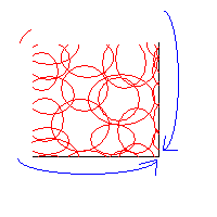 Fill your square with your overlapping design. Overlap the edges of the square to two sides of the square (here the left and top), but not to the other two sides. |