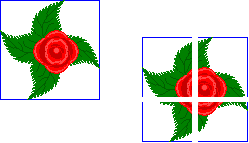 The bits of blue are eliminated, and the design is ready for tiling. Here the roses line up in a